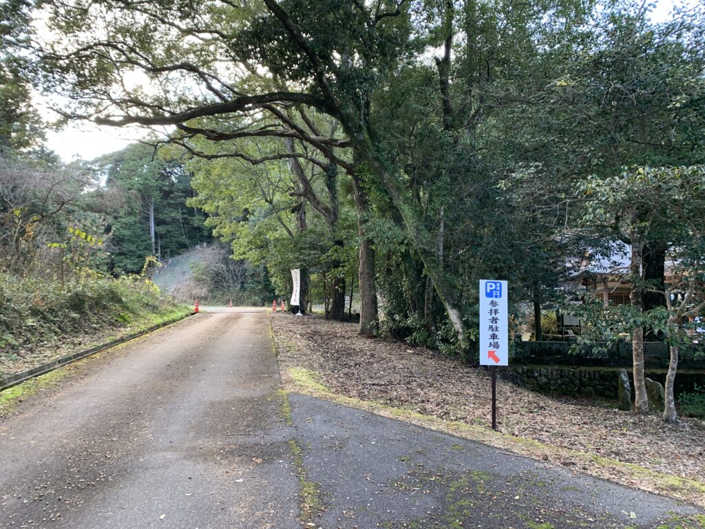 道なりに進むと、参拝者駐車場があります。