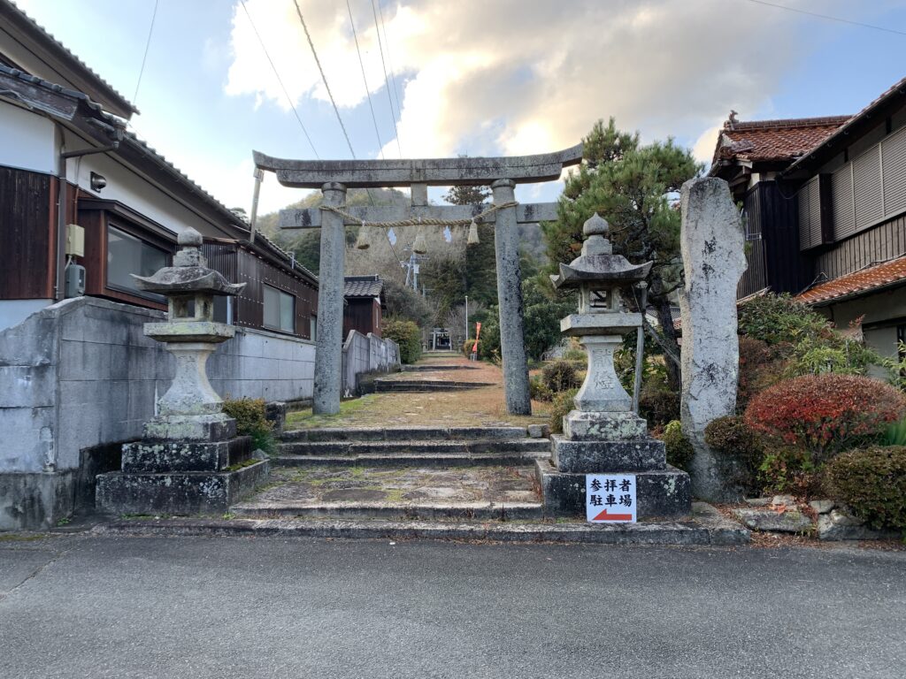 切畑玉祖神社の駐車場は、一の鳥居を正面に左の道を進んだ先にあります。